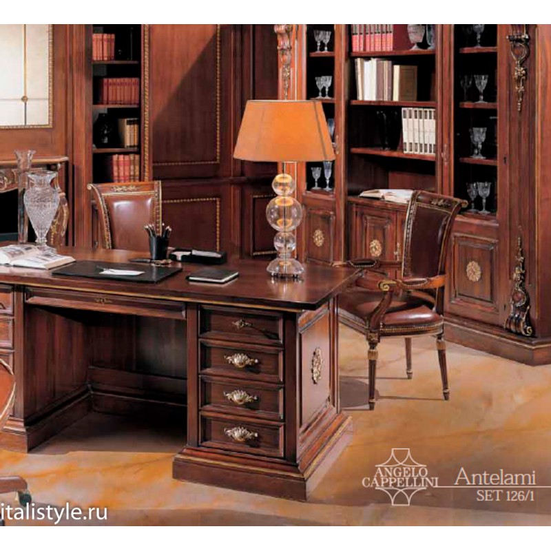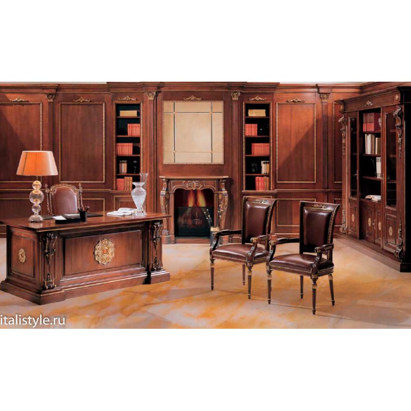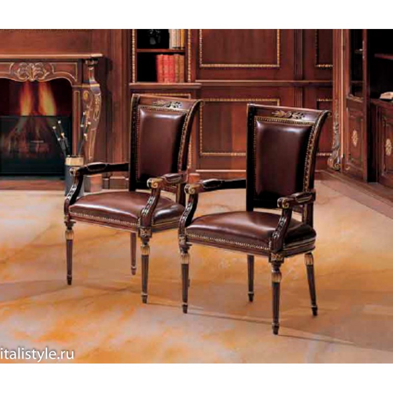 Роскошное кресло от итальянской фабрики ANGELO CAPPELLINI наполнит личный кабинет или гостиную тонкой аристократической атмосферой. Стильный дизайн подчеркнут резными элементами ручной работы. Для основы каркаса изделия производитель использовал массив прочной древесины. Благодаря опыту мастеров-краснодеревщиков кресло имеет индивидуальную форму и эффектную отделку. Обивка изделия выполнена в коже, что придает дополнительный шик и подчеркивает высокий статус владельца. К тому же кожаная обивка очень проста в уходе. Такие предметы интерьера практичны и долговечны. Модель удобна в использовании за счет наличия мягкого полиуретанового наполнителя, широкой эргономичной спинки и комфортных подлокотников. Оснащение их мягкими накладками позволяет удобно расположиться в кресле и как следует отдохнуть либо комфортно заняться рабочим процессом. Деликатная резьба присутствует в обрамлении спинки, в дизайне подлокотников и на ножках изделия. Каждый резной элемент покрыт лаком под позолоту. На темном каркасе это смотрится весьма грациозно.